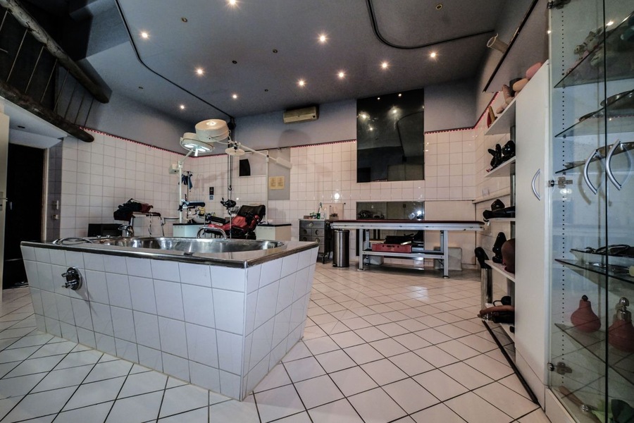 Mit Tatendrang, Kompetenz und Erfahrung leben wir viele Facetten und Vorlieben in vollen Zügen aus und nehmen Sie mit in eine ganz andere Welt. Das massige Herrenkreuz, die Steckbank, das Wasserbecken, die bespielbare Felsendusche, der Stehk*fig, der Flaschenzug, der K*fig und der Durchgang zur Ambulanz bieten dem Bizarrerotiker und Langzeitgast fast unendliche Momente.