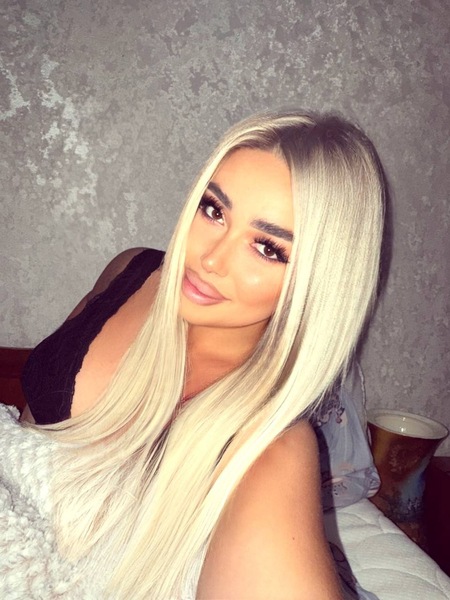 Haare:blond, rückenlang, wellig