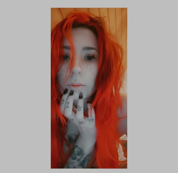 Haare:rot, schulterlang